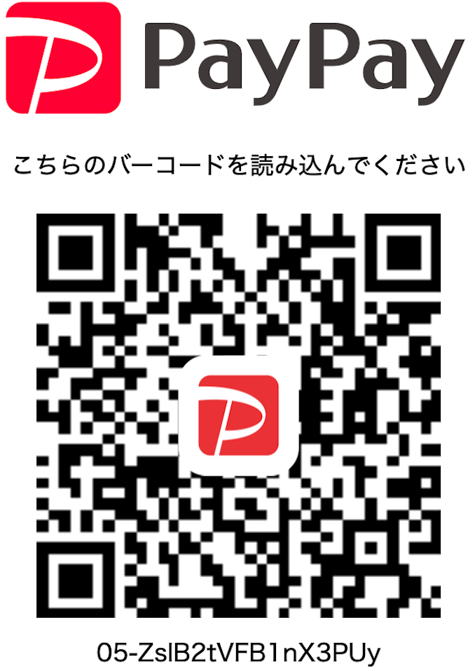 ※PayPay支払いの場合は、以下のQRコードから事前支払い可能です。スタジオ内にもQRコードはあるので、現地でのお支払いも可能です。