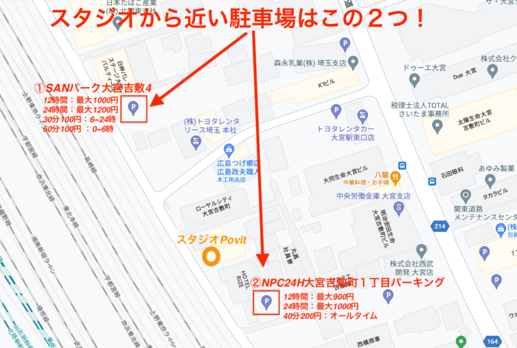 周辺に駐車場はいくつかありますが、以下2つが近いです。