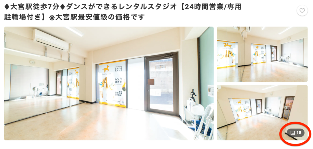 写真の質(綺麗な写真か)・掲載写真の数はオーナーのやる気が表れるところなので確認してましょう。これはオーナーが細部まで気を遣っているか?判断できて、該当していれば綺麗なスペースの可能性が高いです。